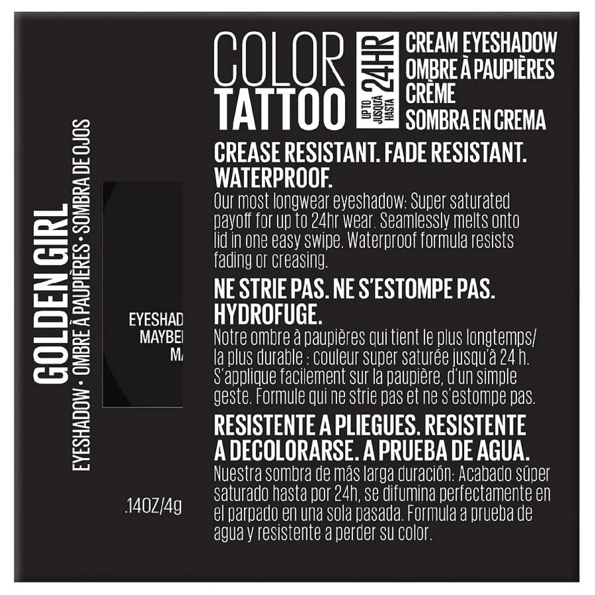 Crease resistant. Fade resistant. Waterproof. Introducing our most longwearing eyeshadow yet! Color Tattoo Cream Eyeshadow pots have super saturated payoff for up to 24 hour tattoo intensity. Seamlessly melts onto lids in one easy swipe. Waterproof formula resists fading or creasing for an all-day look that you can set and forget.