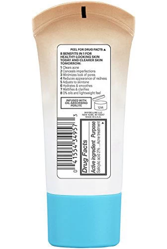 Product DescriptionThis BB skin-clearing perfector adjusts to skin t1. Salicylic acid clears acne, conceals imperfections, enhances, and clarifies skin. 2% is the highest percentage of this powerful blemish-fighter that you can get without a prescription. It is gentle enough to use every day. Clears acne. Conceals imperfections. Minimizes look of pores. Reduces appearance of Redness. Adjusts to skin t1. Hydrates and smoothes. Enhances and clarifies skin. For combination and/or blemish-pr1 skin. Non-comedogenic. Oil-free. Packaging may vary, what you receive may not be what is reflected on site. ? 8-in-1 beauty balm skin-clearing perfector ? Features 2 percent salicylic acid ? Bb pure Reduces appearance of Redness and minimizes look of pores ? Ideal for combination to oily skin Step 1. Apply a thin layer to skin. Step 2. Can be worn with or without a moisturizer. For external use only.Brand StoryBy Maybelline