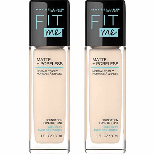 Maybelline New York Maybelline Fit Me Matte + Poreless Liquid Foundation Makeup, Porcelain, 2 COUNT Oil-Free Foundation